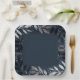 An elegant Christmas party holiday party plate featuring hand drawn faux foil pine branches in a festive silver and blue colour palette designed by Stacey Meacham.