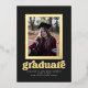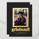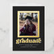 This stylish graduation invitation/announcement features a real foil frame around a single photo on a dark slate coloured background. The word "graduate" is also foil. The back of the card has space for a second photo.