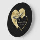 Foil Gold And Black Hearts Large Clock