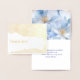 This card is shown in white matte finish card stock paper with Thank You in real gold foil on the front along with a bold floral pattern in subtle gold foiling. Inside is shown with a blue floral image above the white background, a pre-written greeting which you can keep as is or customise to your liking shown in deep blue. Personalise or buy as shown,