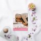 This minimalist Valentine's Day greeting card features a large customer photo, along with the phrase "XOXO" in bold, hand-written lettering, and pressed with gold or silver foil. A simple band of colour allows the customer name to remain legible. The back of the card features a coordinating, typographic pattern.