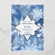 Wintery snowflake-themed wedding invitation with silver foil embellishments on the border, snowflakes, and couple names.