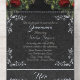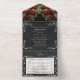 Foil Leaf Frame Quinceanera - Black/Rose Bouquet All In One Invitation