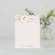 This kid's stationery design features a bunch of adorable, hand-drawn hearts, some of which are stamped with gold or silver foil. On the reverse side, there is a stripe pattern consisting of pink, orange, green, and purple stripes. These playful note cards would be perfect for school-aged children, or perhaps they could be given away as birthday or Valentine's Day party favours. *Note: To avoid smearing on this satin finish stationery note card, I recommend writing with anything other than gel ink pens.
