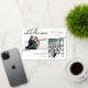 Affordable custom printed Christmas photo cards with simple templates for customisation. The design features Merry Christmas text, a photo collage template with space for 2 photos and your custom greeting, accented with simple elegant watercolor greenery branches. Use the design tools to edit fonts and colours or upload more photos to create a unique one of a kind Christmas photo card design.