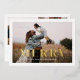 Elegance meets simplicity in this contemporary design. Your cherished holiday photo takes centre stage, elegantly framed with a crisp, clean white border. The focal point of this card is the large, eye-catching bold and modern serif text in real gold foil that reads "MERRY," setting the tone for a joyful and festive celebration. Below the "MERRY" text, you have the freedom to personalise your card with your family's names, creating a warm and welcoming touch.