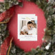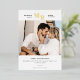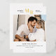 This save the date announcement card features a modern monogram of the couple's initials in an elegant real gold foil. This modern monogram highlights a single photograph of the couple. The save the date details, including the wedding date and wedding location, are displayed below the photo. The back of the save the date card has a place to include a wedding website address.