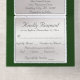 This elegant All In One wedding invitation features a silver pearl center on a emerald background, an ornate frame and scroll heart with bride & groom's names in foil. Designed to coordinate with the "Ornate Frame & Hearts" Wedding Collection. To change details, click «Personalize». To move the text or change the text size, font, or color click «Click to customize further»