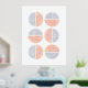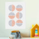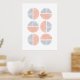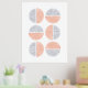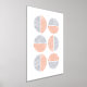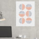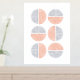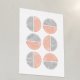 This modern art print features a series of circles divided in half, and divided up with curvilinear and straight lines. The solid half of each circle is a vibrant peach colour, while the other half is pressed in gold or silver foil. This design is versatile enough to work with a variety of decor styles, but I think it would look great in an office or loft.