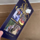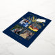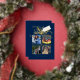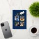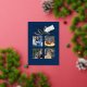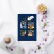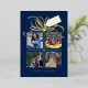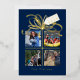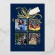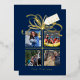 Navy blue photo holiday card to help bring in the new year and stay connected with family and friends. A present with 4 photos on the cover and a real gold foil ribbon, bow and tag with the year.