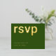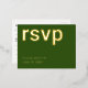 The front of this simple stylish RSVP postcard features "rsvp" lettering and a Reply-By date, in beautiful real metallic foil. The back of the RSVP postcard features stylish wording in black ink and this is where guests can indicate if they are coming to the wedding and where they can indicate their choice of meal. The back of the RSVP postcard also features the name and address where the guests can return the RSVP postcard for the wedding couple. The RSVP postcard has been designed to be quick and easy to personalise online before ordering.