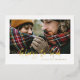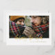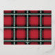 foil script glory to god stylish holiday card with red tartan backer design. Space for single photo.