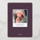 Let baby's name take centre stage with these elegant birth announcements, featuring a vertical photo with baby's first name overlaid in rose gold foil calligraphy script lettering. Personalise with baby's middle and last name and birth stats beneath, and add an additional photo to the back, along with a personal message.