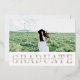 Modern graduation announcement card features a single horizontal or landscape orientated graduation photo, with "graduate" along the bottom in rose gold foil lettering. Personalise with your name, school and graduation year through the centre. Add additional details about your graduate to the reverse side.