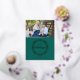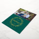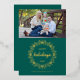 This holiday card features a foil wreath and text on a rich green background. Customise with the year, your name and a photograph. Image courtesy of Katie Soyka Photography.