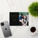 This chic Valentine's Day photo card features an elegant, foil heart design with type reversed out to let the black background shine through. The phrase "XOXO" is written in a bold, hand-drawn font. Underneath the heart design is a space for the customer to add a custom holiday greeting, or they can keep the message as is. The back of the card features a simple polka dot pattern.
