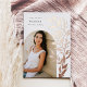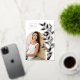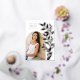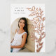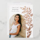 Chic and modern graduation announcement features a single vertical/portrait orientated photo in an arched layout, with climbing vines of rose gold foil botanical leaves along the right side. Personalise with your graduate's name, class year, and school and add a personal message to the back, along with an additional photo.