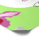 A vibrant floral print highlights a elegantly dress woman in a full lilac ballgown.