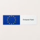 Folded business card template with EU flag logo. Two sided visit cards with custom company name and contact details. Double sided design. Upload your own company logo optionally. European Union flag with stars. Great for international shipping, service, office, corporation, language school, lessons, tutor, teacher, trade, politics, travel and more.