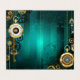 Jewellery, gold watch with a gold chain and keys on a green textural background. Steampunk style.