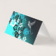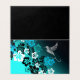 Here's an explosion of tropical flowers on a fade-to-black turquoise background. The design includes a single stylised metallic hummingbird.
