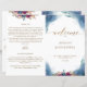 Elegant manually folded quinceañera program. Once folded "front side" and inside's right side features gorgeous soft watercolor stains with dainty stars and floral details in blue, navy, turquoise, teal, purple, burgundy, fuchsia and golden tones. Back and inside's left side in white background with floral detail on top. Personalise the program adding any details or message you like, ours is simply an example. Ability to make text changes and adjustments by selecting customise further. Also available in English. Also available in Spanish. NOTE: this program will arrive flat and requires folding down in the middle to assemble. The default paper thickness is recommended.