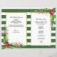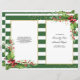 This folded wedding program features Christmas berries and holy on a green striped background with faux gold embellishments. The oder of service is on an 11 x 8.5 and folds in half to be 5.5 x 8.5. Add your wording using the assigned text fields. Or you may click on the "customise" button to remove the text fields and add your own copy just the way you like it. Designed by Victoria of VG Invites.
