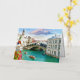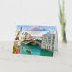 Escape to the magical world of Venice anytime you desire with this gold foil greeting card, featuring the famous view of the Rialto Bridge from a terrace overlooking the Grand Canal.