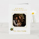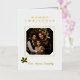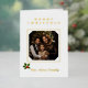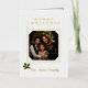 Holiday photo card is shown with a festive Christmas holly accent and with a greeting from your family.