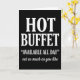 Bring the laughs with this bold and cheeky “Hot Buffet – Available All Day – Eat As Much As You Like” card! Perfect for anyone who enjoys sarcastic humor and playful double-meaning jokes. With its clean typography and subtle innuendo, this tee makes a great gift for men and women who love funny adult humor. Ideal for parties, birthdays, casual hangouts, or as a hilarious gag gift for friends and coworkers.