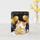Ring in the New Year with this cozy calico cat, golden balloons, and sparkling fireworks!