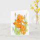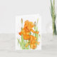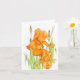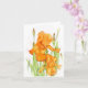 Folded greeting card with repro of original watercolor of orange iris. Blank message.