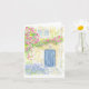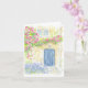 Folded greeting card with repro of original watercolor artwork of English cottage with flowers. Blank message.