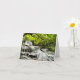 Folded greeting card with scene of waterfall in woodland setting. Blank message.