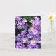 Folded greeting card with photo of purple asters wildflower. Blank message.
