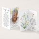 In loving memory and forever in our hearts, your loved one's photo, name and dates are featured on the front of this folded card. The Lord's Prayer or poem on the back, and your thank you message with a bouquet of wildflowers are on the inside. Beautiful to include at a funeral, celebration of life, memorial service, death anniversary or use as thank you notes. MATCHING items in our collection.