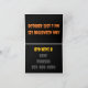 Halloween folded invitation with black background and orange yellow, and pink font throughout the card.