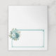 This folded name place card is shown in basic white with a lovely teal color floral bouquet with an accent frame in a color of teal.