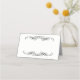 This folded name place card is shown in basic white with a black fancy border box in the centre.