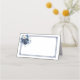This folded name place card is shown in basic white with a lovely floral spray in colours of deep blue.