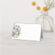 This folded name place card is shown in basic white with a lovely white lilies and purple iris art print.