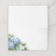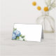 This folded name place card is shown in basic white with a lovely blue hydrangea art print.