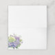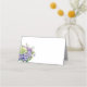 This folded name place card is shown in basic white with a lovely purple hydrangea and roses art print.