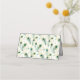 This folded name place card is shown in basic white on the matte card paper with a lovely peacock feather print in colours of teal and gold.
