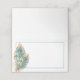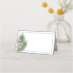 This folded name place card is shown in basic white on the matte card paper with a peacock feathers print.
