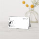 This folded name place card is shown in basic white with a wedding couple print and custom names.
