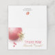 Special and festive Rosh HaShanah's table place card with a watercolor pomegranate illustration and a Shanah Tovah greeting.