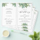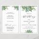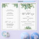 A folded wedding program with an ultra chic modern font featuring lush greenery and a faux silver border which will complement many wedding themes. Printed on both sides, the cover shows the venue whilst the inside can be edited with the ceremony and wedding party and is supplied flat for you to fold. This modern design with silver borders is suitable for a religious church memorial service or a humanist ceremony. The FAUX silver foil effect is printed and is NOT metallic. The foliage was painted here in our studio and is therefore unique to the Stationery Concierge.