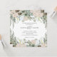 These watercolor floral wedding invitations feature plenty of green leaves with flowers in soft shades of green, cream, sage, and brown.