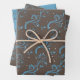 Foliage Blue Brown Pattern Christmas Wrapping Paper Sheet